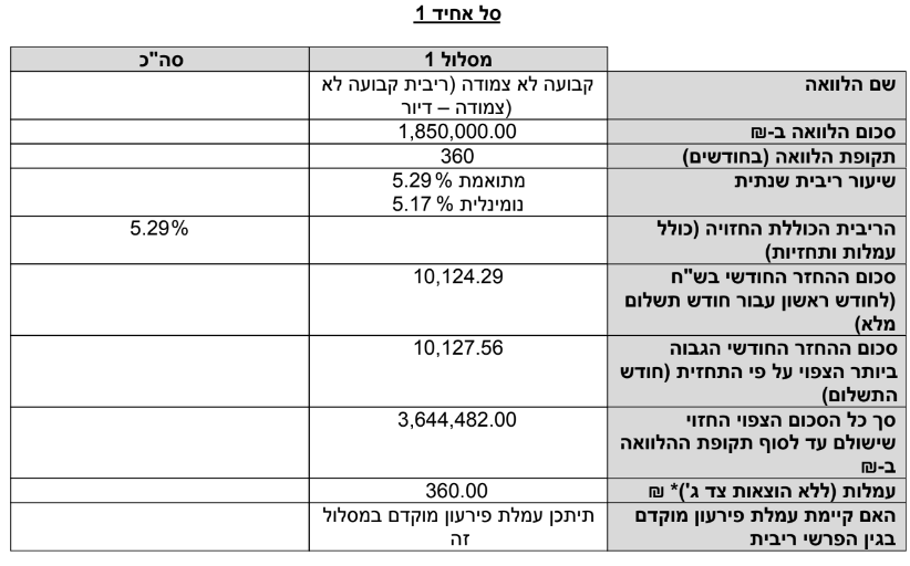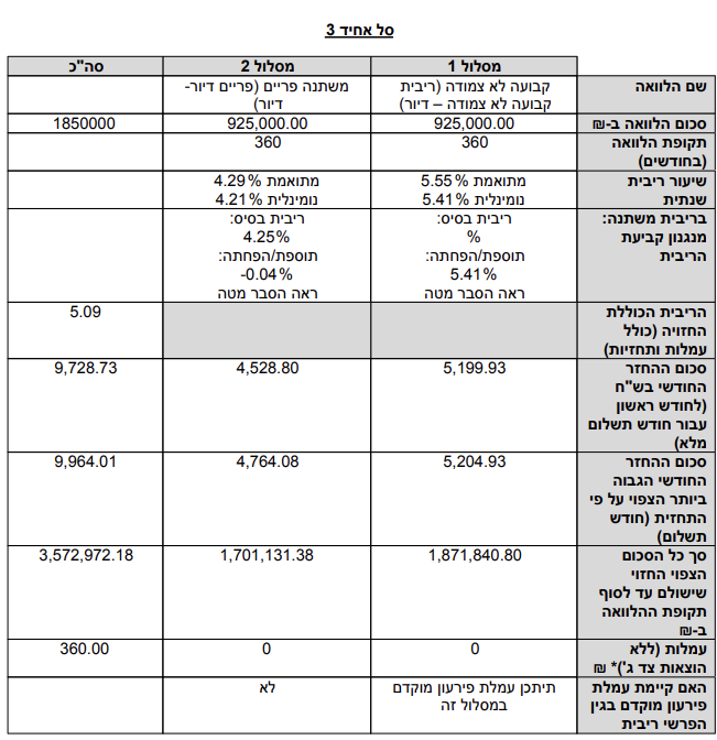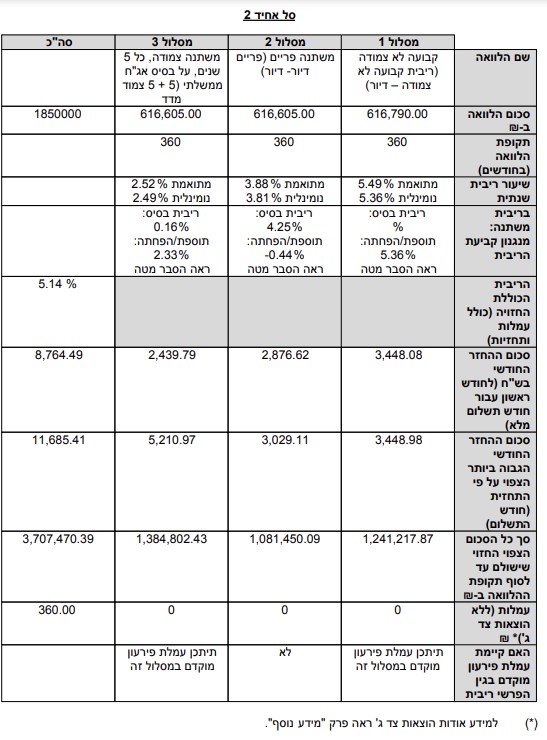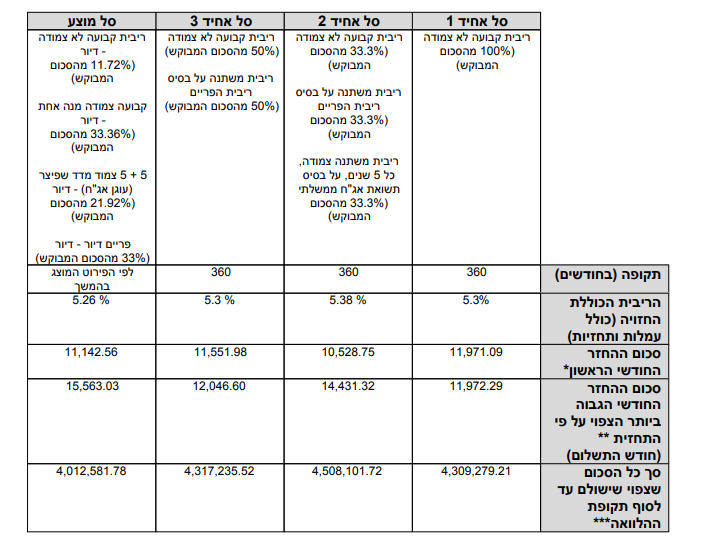 - הלוואה משתנה צמודה כל שנתיים וחצי - למי שמעוניין לבצע פרעון מוקדם מיידי (מסלול פיתוי).