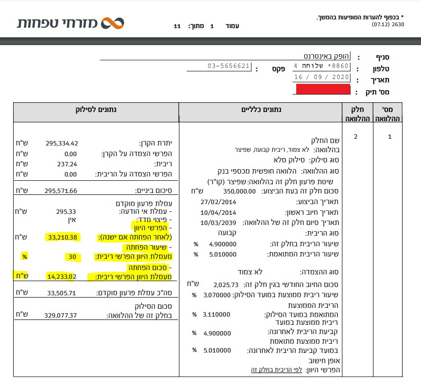 הדרך השלישית לבדוק כדאיות למחזור: בחינת גובה עמלת הפרעון המוקדם בדו"ח יתרה לסילוק