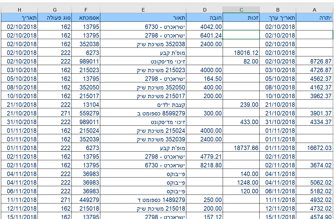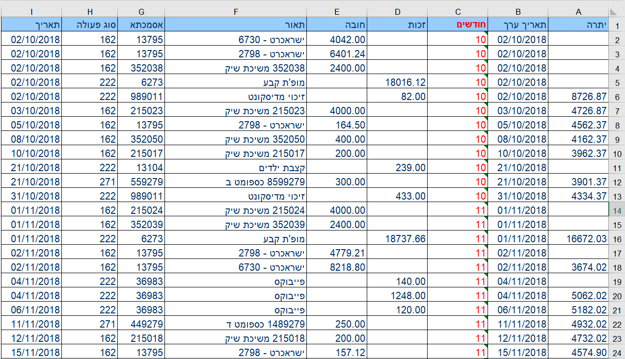 מתחילים. היכנסו לאתר הבנק שלכם וייצאו לקובץ אקסל את התנועות שלכם בעובר ושב מאחד עשר החודשים האחרונים. אנחנו מדגישים שוב - אחד עשר חודשים האחרונים.