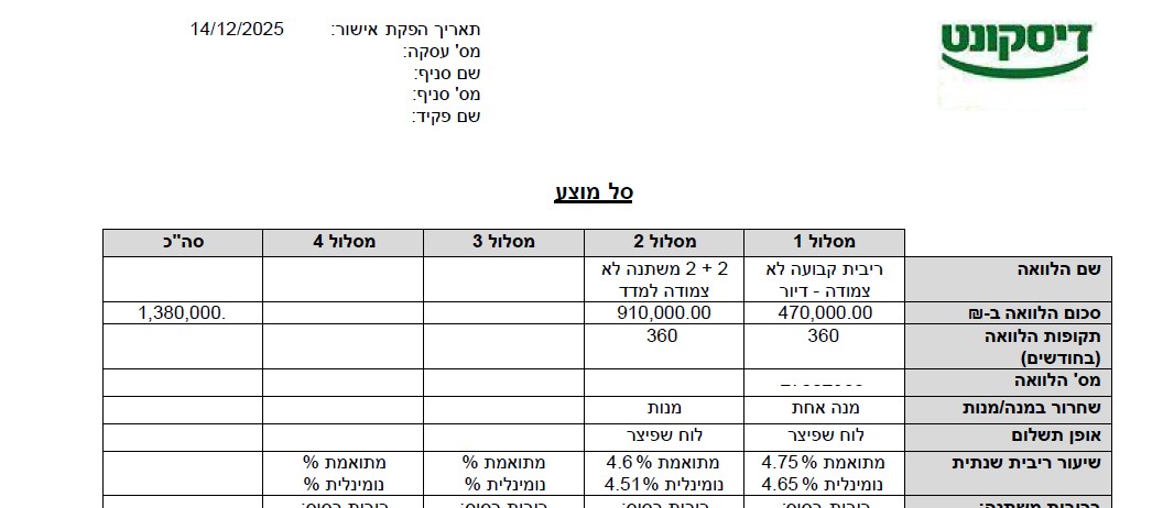 נעזר בדוגמה הבאה מתוך אישור עקרוני של בנק דיסקונט